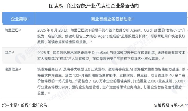 阿里巴巴、网易、浪潮信息等企业在商业智能业务上的最新动态,鲜明展现出行业以AI深度融合为核心的发展方向:阿里借助AI升级QuickBI、推出数据分析Agent及AI商旅解决方案,从电商到商旅等多场景推动智能化变革;网易运用DeepSeek等大模型技术,优化商业智能产品,在客服等领域实现智能化应用升级;浪潮信息发布海岳商业AI及大模型3.0,整合企业最佳实践,通过智能体打通企业经营管理与生产运营的智能化落地流程,为企业提供一站式智能解决方案。